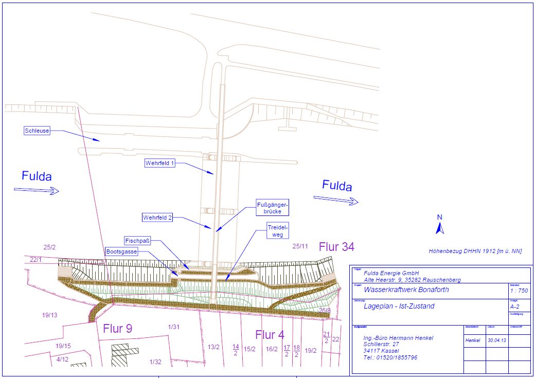 | Das Wasserkraftwerk Wilhelmshausen auf Planzeichnungen: |